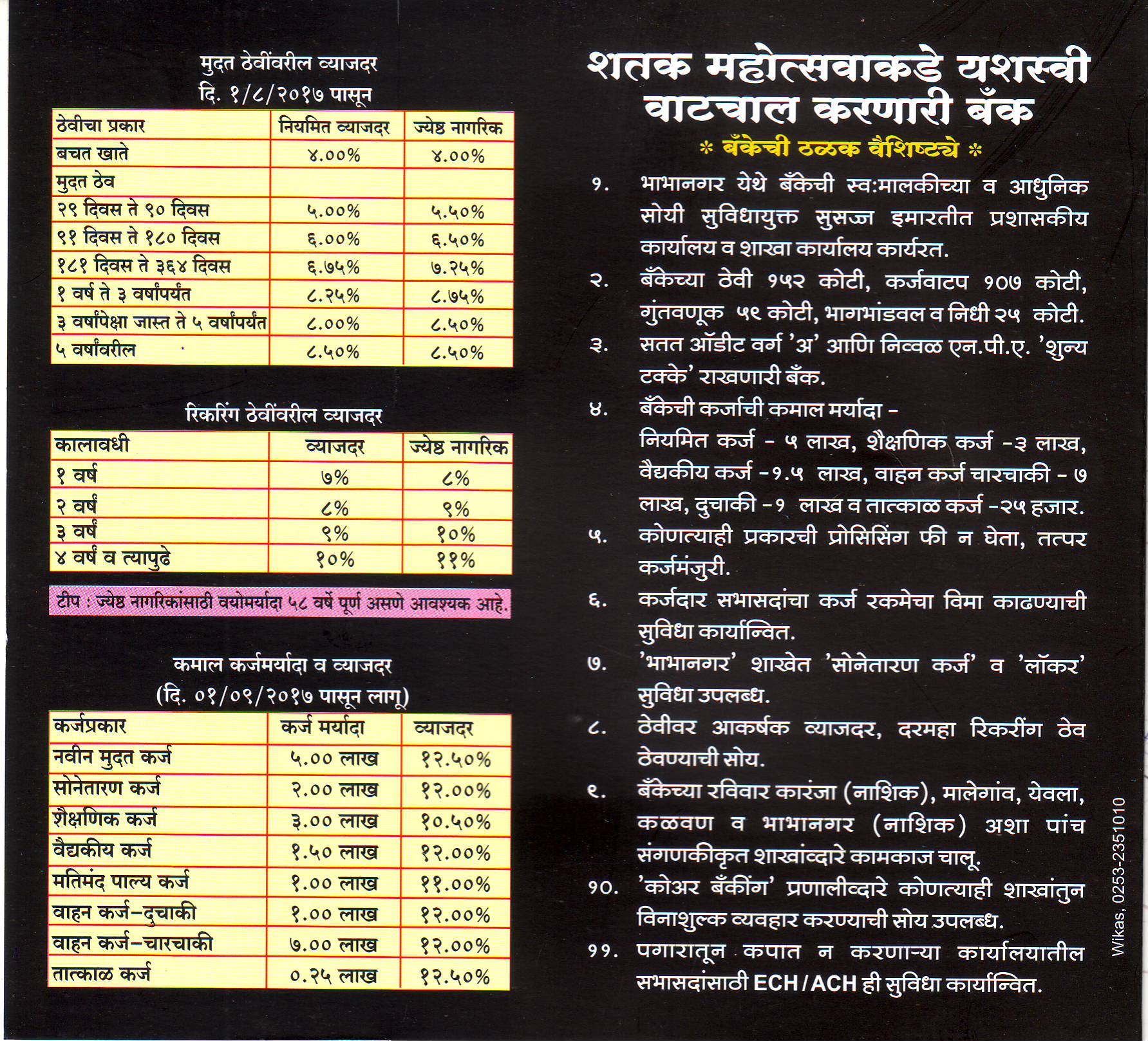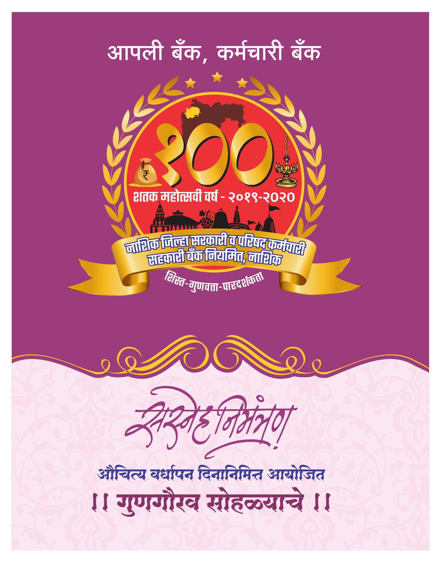 बँकेच्या वर्धापन दिनानिमित आयोजित गुणगौरव कार्यक्रम शुक्रवार दि. २२ सप्टेंबर २०१८ रोजी परशुराम सायखेडकर (प.सा.) नाट्यगृह ,नेहरू गार्डन, टिळकपथ, नाशिक येथे सकाळी ठिक ११.३० वाजता मान्यवरांच्या शुभहस्ते आयोजित केला आहे. तरी कुपया याची नोंद घ्यावी व आपल्या गुणवंत पाल्याचे गुणपत्रक विहीत नमुन्यातील अर्जासोबत दि.१५ सप्टेंबर २०१८ पर्यंत बँकेच्या कार्यालयीन वेळेत जमा करावेत. विहीत नमुन्यातील अर्जाचे वाटप सर्व शाखांत चालू आहे.